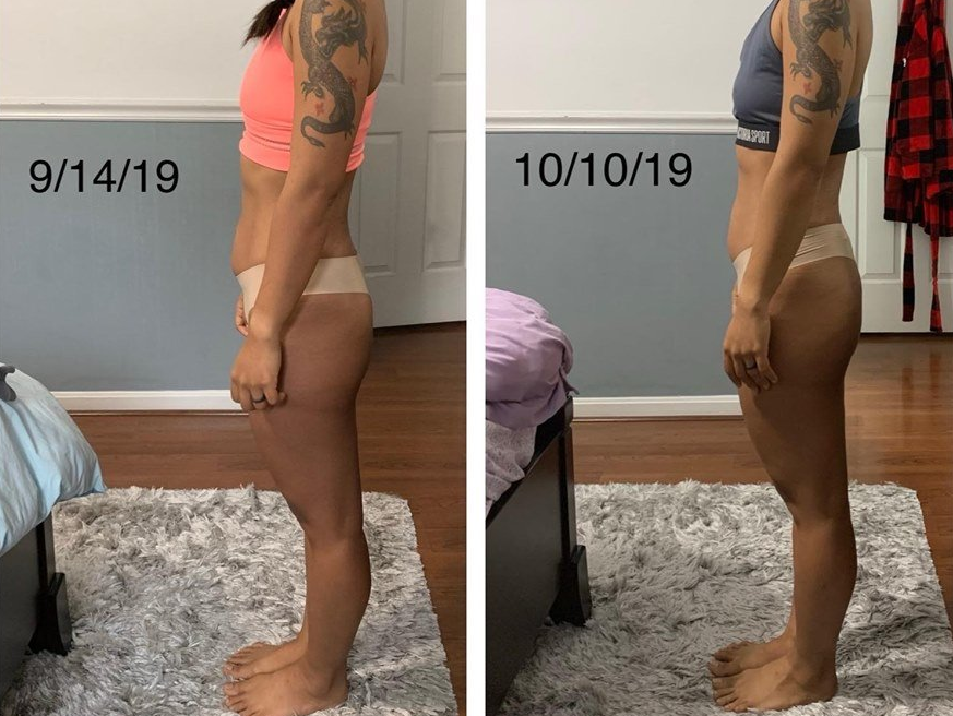 I started noticing changes in my body after about 1 year of weight-training. I learned the hard way that results don’t happen over night and you have to be consistent with your training.