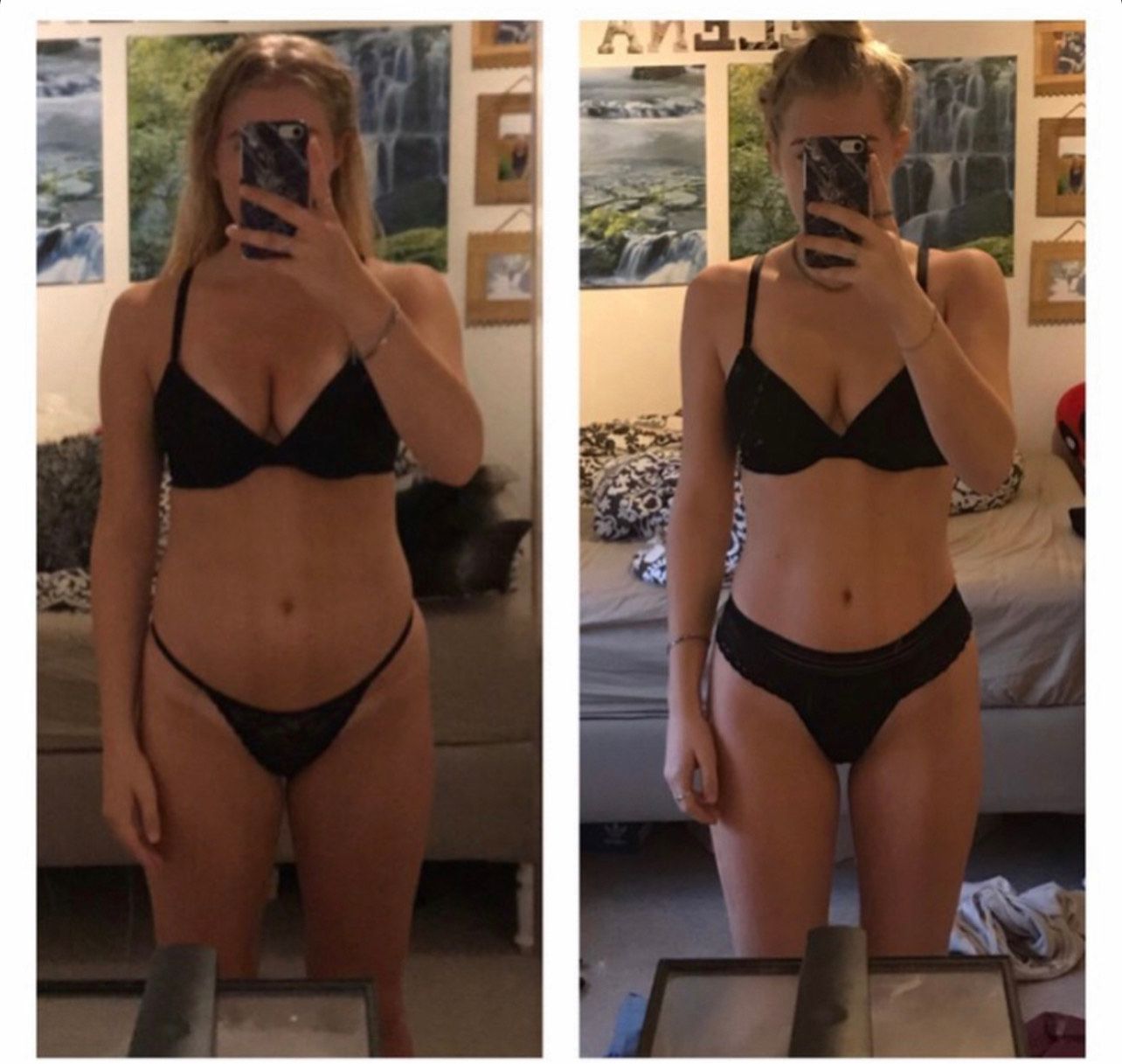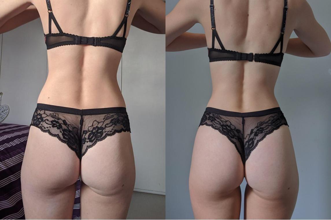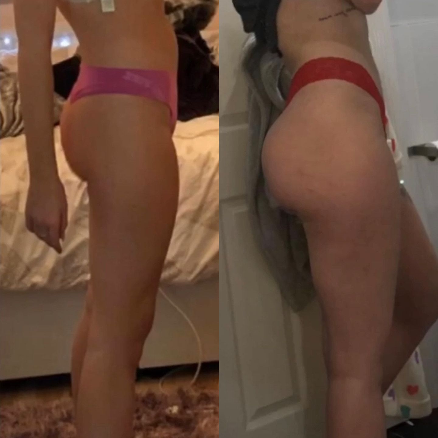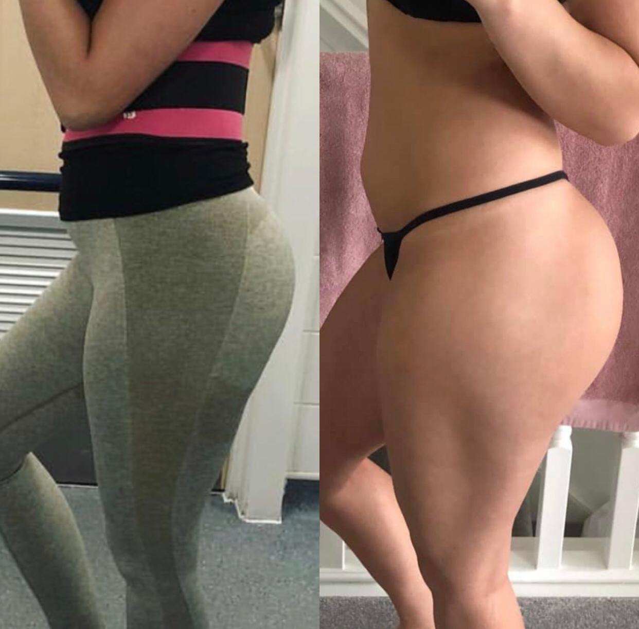 "So in a month I’ve gone from 17 to 18cm round my quads and glutes have gone from I think 33-34.5 in a month!!!! I can’t get over my body change in such a small space of time, Ben keeps saying it feels like a foreign body ๐ I’m chuffed with pictures I took from before to now it’s mental babe!"